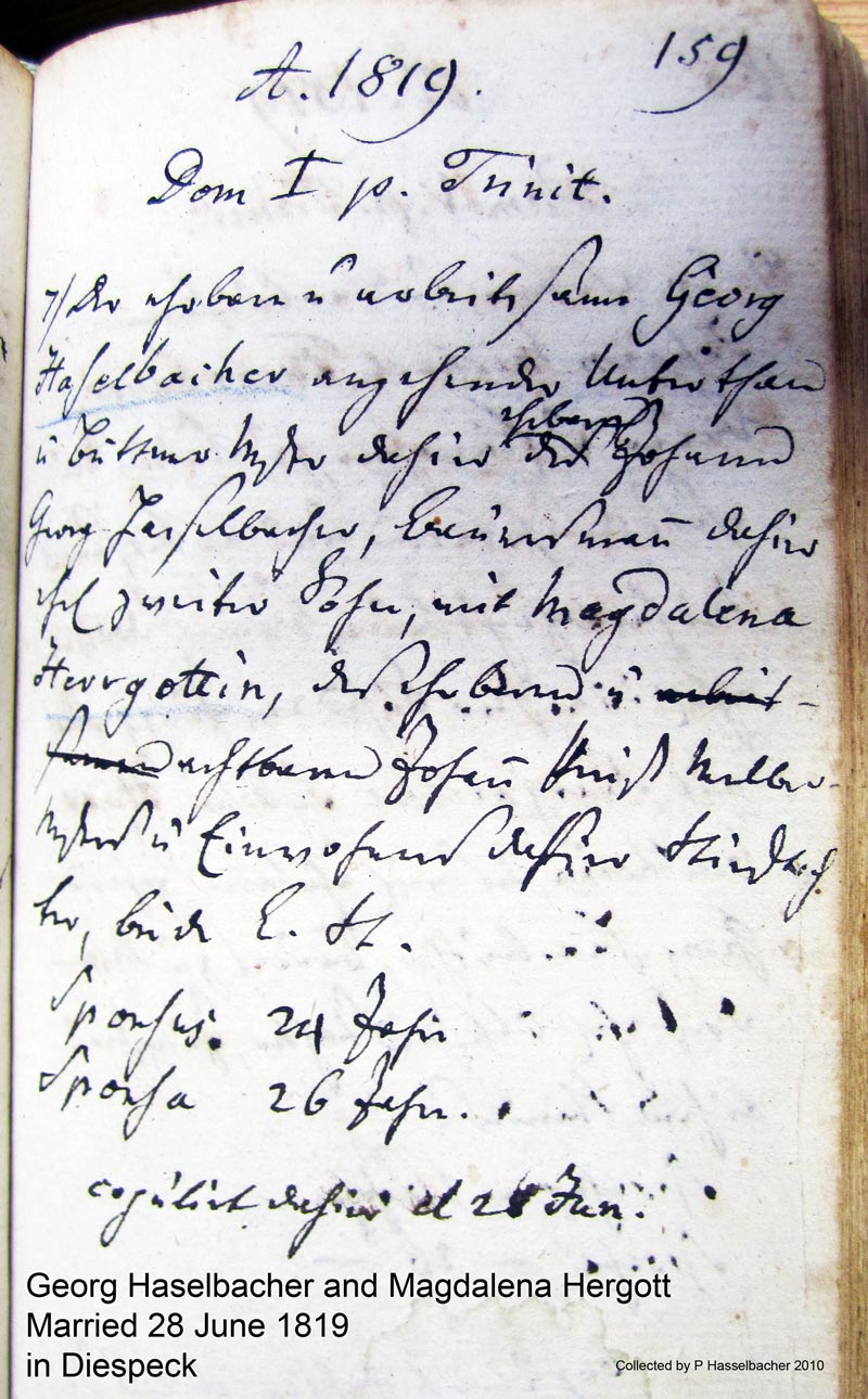Johann Georg Hasselbacher; marries Magdalena Hergott