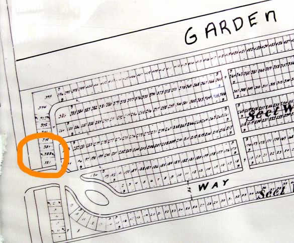 Because the graves are unmarked, I must surmise exactly which plot is ours, but now you will know as much as I do. Three of the stones had the plot number engraved and I annotate the photo below. Plots #1 and #3 are arrayed across the lower portion of the photo, and Plot #11 is in the next to last row by the fence. I speculate that our Plot #7 is the unmarked patch between #3 and #11. (Next time I have an chance, I will ask who is buried in #6!]