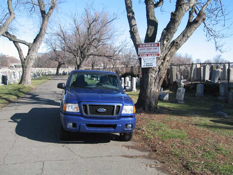 Below is a view south down the long axis of Section W. Our graves are at the very end near the fence at South Orange Ave.