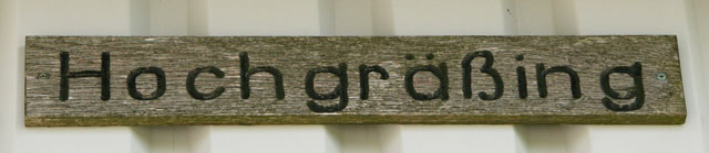 About the spelling of old these farm names. In the ancient, the merely old, and new records in which I have seen the names of these farms; it seems they are always spelled differently! This of course is no surprise given the 400 year interval of our studies. In addition, and perhaps unnecessarily, I have been trying to keep letters with diacritical marks (ü, ä, ö) out of the web addresses. Therefore please forgive me for the variation you see. I think what I will try to do is discover what contemporary spellings are in use, and use those. The sign on the house itself was spelled Hochgräßing, not Hochgrössing as on the marker above.