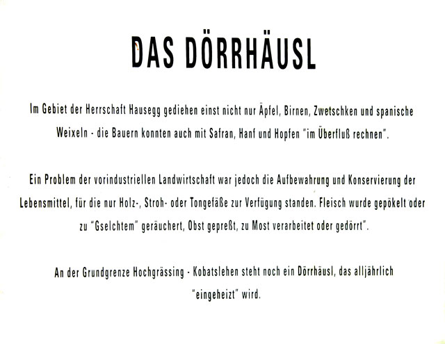 As best I can tell from a first pass, the sign below refers to a "Drying House" or related process for preserving foods. This referrs to both Hochgrässing and Kobaltslehen.