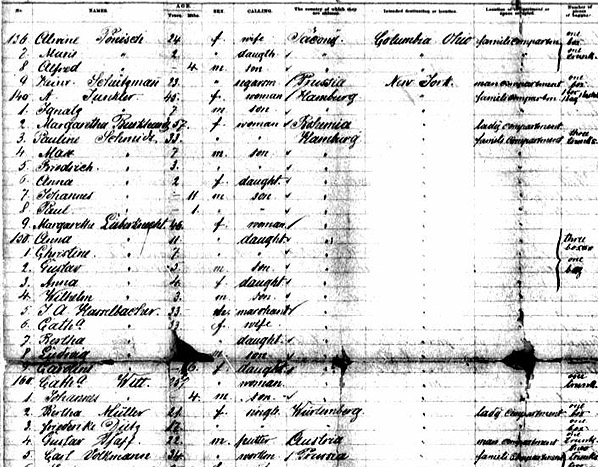 Early on in my search for American Hasselbacher families, I found a New York passenger list (below) from 1884 listing the arrival of J.A. Hasselbacher (2 s’s) and his wife Cath. who were both 33 y.o. They had three children whose names and ages were more or less obscured but appeared to be Bertha (or Rutha), Ludwig, and Caroline. I was not able to place them and I put them on the back burner. As I accumulate more information in general, occasionally other things tumble unexpectedly into place as it did in this case. The family shows up next as well-established in Oakland, California. A series of the next three census reports, some additional passenger lists as citizens, and a WWI registration allows the following summary. John Andrew (Johann Andreas) Hasselbacher is born 6 Feb 1851 in Dinkelsbuhl, Germany. He is a brushmaker and establishes his own business in America. About 1880 while still in Germany he marries Katherina, (b.13 Feb 1851 in Regensberg, Germany). When they immigrate in 1884, they have the three children above whose names become Lewis Charles (b. 13 Dec. 1880) and Lena b. Oct 1883). Bertha dies before 1900. The couple lists an additional two children, Wilhelmina (b. Oct 1883) and Clara (b. Sept 1889). There is some ambiguity about where the two younger children are born: Germany or California. The birth dates seem incompatible as well: two children in 1883. These additions may well have been born in California as listed in later censuses, but their initial mention in 1900 gives place of birth as Germany and also lists immigration dates of 1892. An apprentice brushmaker, Alvis Landsman, also arrives in 1892 and is living with the family in 1900. It seems more probable that Mena and Clara are relatives who came over later and were "adopted." Perhaps the answer to this riddle will become available if descendants step forward with more information. Are these folks a part of my Hasselbacher Family? It is quite possible but the links are not in hand. The initial spelling used two “s”’s but then settles on a single “s”. Dinkelsbuhl is just down the romantic highway, less than 70 km from the initial Franconian villages from which the rest of the Hasselbachers on these pages come from. A few weeks from now I will visit Dinkelsbuhl, where coincidently my Great-Grandfather Xaver Jakob Bayerl (also a brushmaker) was born in 1865. Perhaps I will be able to find additional information. If I were to guess, a likely connection might be through one of the other two sons of Steffan Hasselbacher of Austria about whom I now know very little, but about whom I intend to learn much more. I will keep you all posted. Help me if you can. Peter Hasselbacher AddendumI visited Dinkelsbühl in April 2007 to look for records of my Great-Grandfather Xaver Baÿrl. It is a relentlessly gorgeous medieval village whose walls are almost intact. I was successful. A second reason to visit was to see what I could find out about the Hasselbachers. I was successful there too, but not all the answers I wished for were to be found. I saw many Hasselbacher records including the birth record of our Johann Andreas on the same date he himself listed in 20th century American documents. (I was not permitted to photograph the records so you will have to forgive some misspellings in my transcription of the old writing and the oral interpretations by the church clerk.) The church books of St. Georg’s Church confirm that J. Andreas was born 6 Feb 1851 and his baptismal name appears to be Brandna. His father was Andreas Hasselbacher, a Gutnermeister (gardener) who lived in House Number 108. His mother, Marianne, was from Durwangen, 5 km to the north of Dinkelsbühl but her last name is subject to correction. Since there were several other children to this senior couple I got several cracks at her name. The best guess so far is something like “Göengerle” but other unreadable versions looked as different as Jüreg. That is the nature of church records where the scribes write what they hear spoken. Johann Andreas had at least five siblings between 1848 and 1861 to the same parents. There are also other Hasselbacher couples having children, including Joseph Hasselbacher and Eva Brückner of House Number 171 who have a son Johann Andreas on 19 Dec 1841, ten years before the birth of our J. Andreas. Still another couple; Andreas (whose father is Max H.) and ?Mack Carolina, born 6 Mar 1851) are married on 13 Sept 1870. There are still other parings and births that I did not have time to unravel. There is much name sharing among the families as if they were related. Despite the several dozen Hasselbachers I found in the mid 19th century, I could not find any of the children of our Johann Andreas, nor evidence of his marriage to Katherina. The nature of the records was such that I believe I would have found them if they had been there. Since Katharina was born in Regensberg, I must assume the couple met and raised their families elsewhere than Dinkelsbühl, perhaps Regensburg. That is a search for another time. What did I learn? How did the Hasselbachers get to Dinkelsbühl? The short answer is that I do not know. I did not have the time go back as far as I would have liked, but they appear to have been there in numbers by the early 1800s. There is more to learn in these records. Dinkelsbühl is a Catholic town. It seems a little atypical that religious refugees fleeing a forced Catholic conversion would go to a Catholic town, but a hundred or more years would have passed for the usual mixings to occur. (In this same time period, both of my great-grandparents were in such “mixed” marriages that were obviously occurring.) It is also quite possible that this line is a very different one from the descendants of Gresten, Austria. I also have a better feeling about the spelling issue. Everyone I spoke to whom aught to know told me not to make much of the variation among Hasselbacher, Haselbacher, Haßelbacher, or for