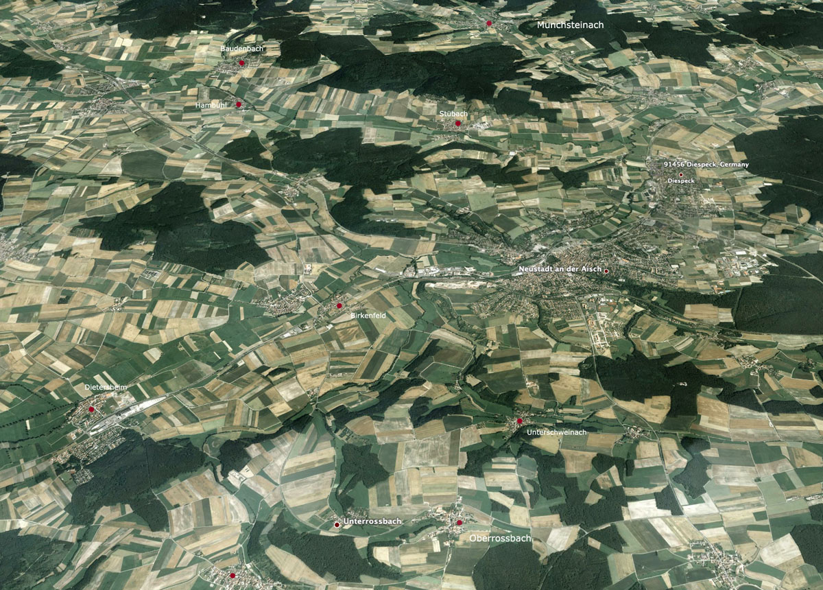This is the ancestral farmland of my family. Diespeck an der Aisch is an easy bicycle ride away from the other little towns that our ancestors settled. It is not a surprise that they found their spouses from the surrounding communities. It remains quite lovely today.