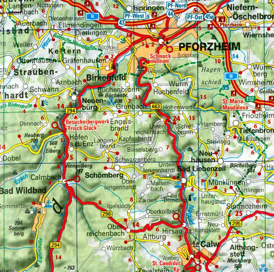 Unterreichenbach is the ancestral home of the Eckers who apparently settled the area in the earliest 1700s. Sited on the Nagold River, it was a place involved in the rafting of logs from the Black Forest. As the Ecker family contained millers, it may have provided waterpower for that enterprise too. Note that there is a village of Oberreichenbach to the west of Calw. Unter- and Ober- refer to lower and upper to my understanding. While the church books of the 1700s occasionally refer to Reichenbach, I have not yet seen a reference to Oberreichenbach. There is a village of Reichenbach much further to the south that existed in the 1800s, it seems too far away to be part of this administrative region. (Indeed there are several localities named Reichenbach in this part of Germany.) In modern times, that latter village is very small and is named Reichen. I will try to sort our the distinctions when I visit the area. Other villages in this map that contained our early maternal ancestors in this line include: Hofen an der Enz, and Eutingen.