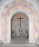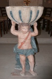 | Wooden baptismal font made by Balthazar for the church in Stübach that is now in Alladorf. It is modeled after the sandstone font in Münchsteinach. | ||