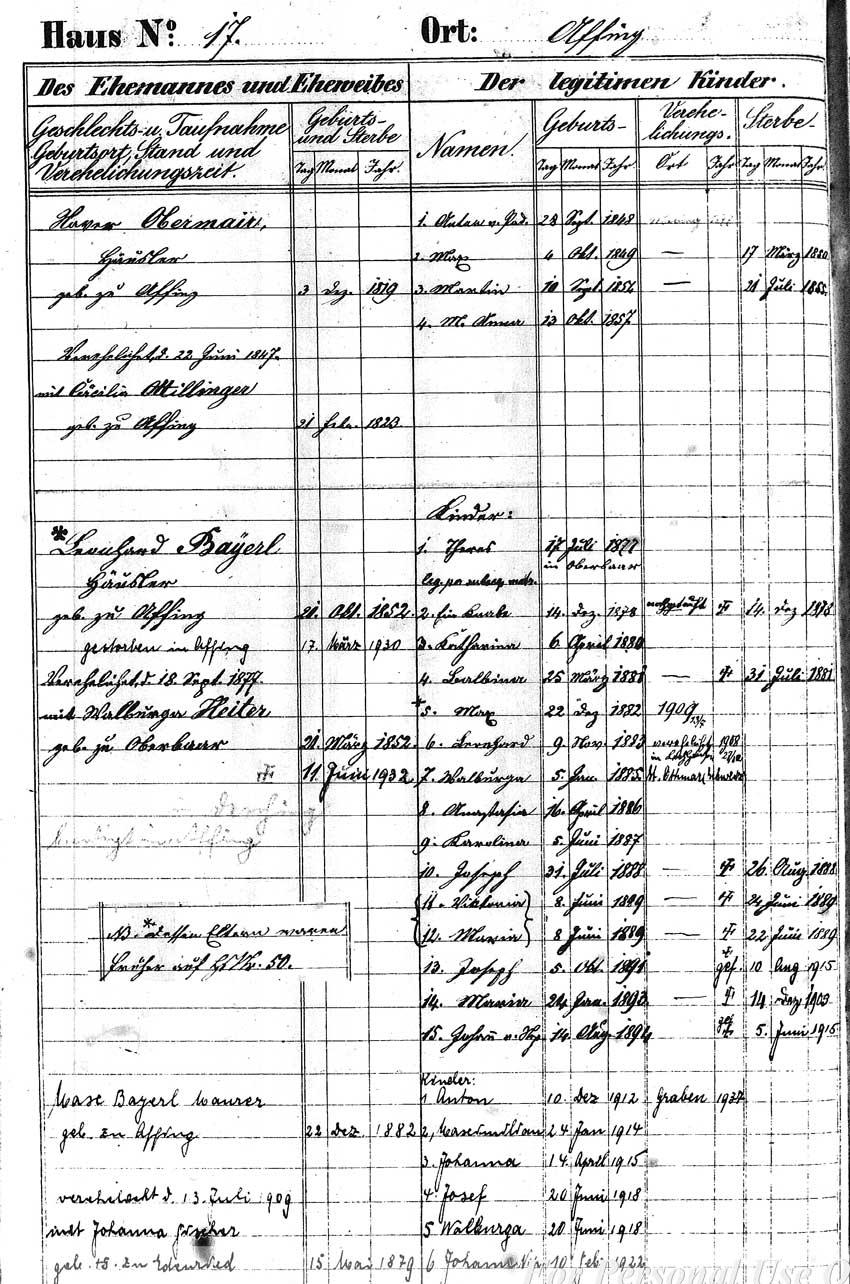 | 20 Feb | The oldest Bayerl baptisms in Affing. Relationship not known. |