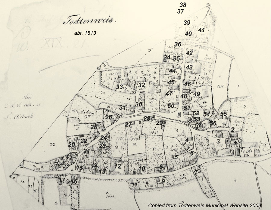 | 2 Feb | Family Registers from Todtenweis: Xaver and Michel Helfer, and Dominikus Baÿrl. Map of Todtenweis from 1813 with house numbers. |