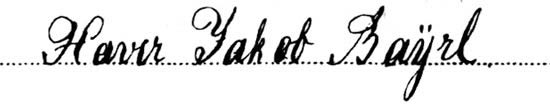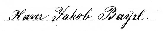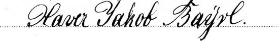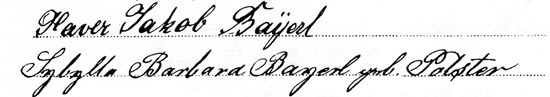 I do not have a lot of examples to work with. They include entries by parish priests, church scribes, and clerks in the archives of Nürnberg. We already know to expect some variation from these writers as they wrote down what they heard, sometimes from illiterate people, or used spelling and writing conventions particular to their time, place, or personal preference. The other examples are a handful of signatures by Xaver Bayerl himself, or other members of his family. Additionally there is the inscription on Xaver's gravestone, presumably directed by another family member. One would anticipate that the family's own signature would be definitive, but you will see below a variation similar to that in the church-books. Given that there are elements of linguistics and orthography that are far over my head, let see what we might learn from an initial comparison of late 19th and early 20th Century signatures with the hope that some expert or other family member will stumble on this page and lend us some better understanding.