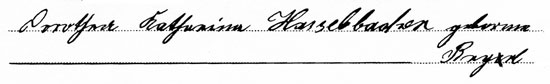 Six years later in 1900, Xaver signs his name at the birth of his daughter Eva. He still drops the 'e' in his last name. He reverts to a prior style of 'r' and again uses an overlay bar on what I assume is the 'J' in Jakob. He makes his capital 'B' in a new way, more like Barbara does!