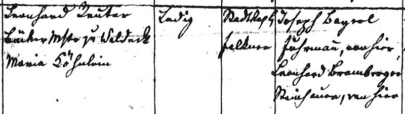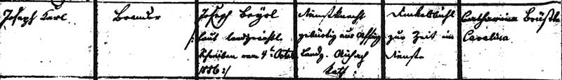 This is the earliest instance of the Baÿerl name in the church books of Dinkelsbuhl. The reference is to the birth of Joseph Carl Brüstle in 1856. His mother is my GG Grandmother Carolina Brüstle who was not married to Joseph Baÿrl at the time of the birth but married him the next year. Note the spelling in the third panel of "Joseph Baÿrl. There is some other language there that I do not understand yet.