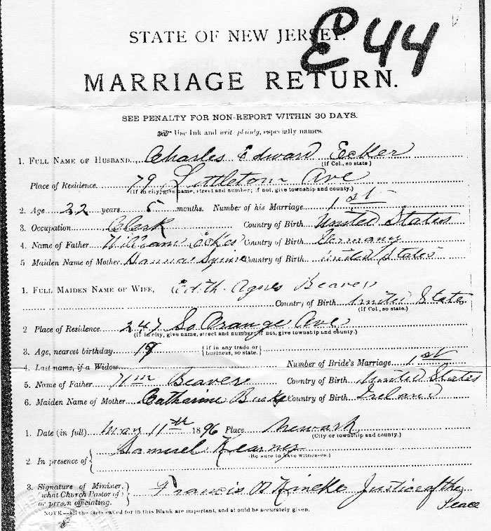 Marriage to Edith Beaver 1896 | Important as identified/ confirmed names of parents. |