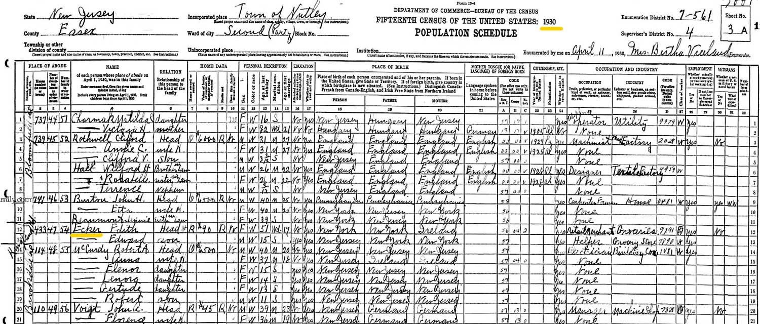 Census 1900 | Edward & Edith living with Edith's mother, Kate Burke. Hazel did not survive. |