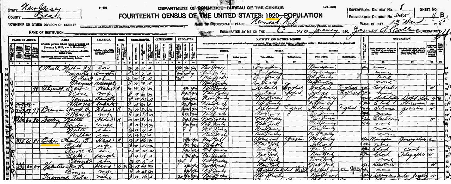 Census 1920 | Living with 4 children. Hazel not with the family. |