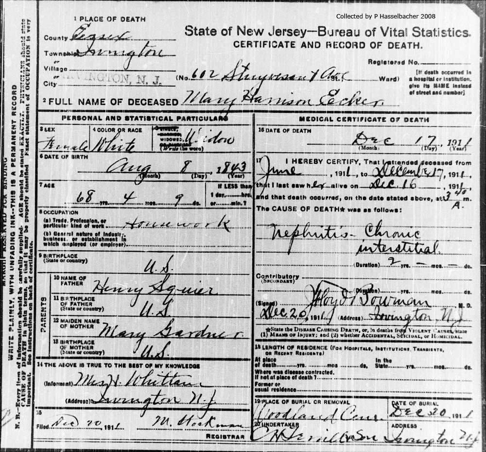 Mary Harrison Ecker | 1911 | Sister of Hannah Squire Ecker | Essex |