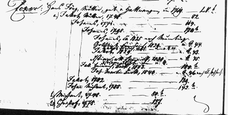 This is the Ecker entry for the index to the oldest book of Family Registers within the churchbooks of Unterreichenbach, Germany, the ancestral village of my Ecker family. As you might imagine, this was a godsend. Not only did the Pfarrer or scribe identify which pages contained Ecker families, but also nested the entries by generation. I have all these pages; indeed, I have the entire collection of Registry Pages in the first two volumes. Alas, the Eckers seem to have disappeared after the mid 1800s. There are no more new families living in the village other than these. Neither are there any modern confirmations in the 20th century. Nonetheless, these pages and indexes will help track other family lines in what was a small community.
