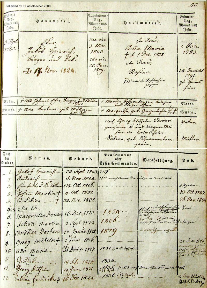 Note also that Jakob Heinrich is not a miller like his father. It may be that only a single son would inherit that income producing occupation.