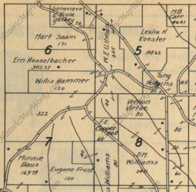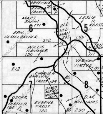 In 1913 above, John Hesselbacher owns the original homestead and has purchased the Düerstein farm just north.