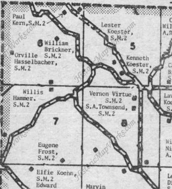 In 1963, the farm passes to Orville Hasselbacher where it remains (but spelled as Hesselbacher) through 1987.