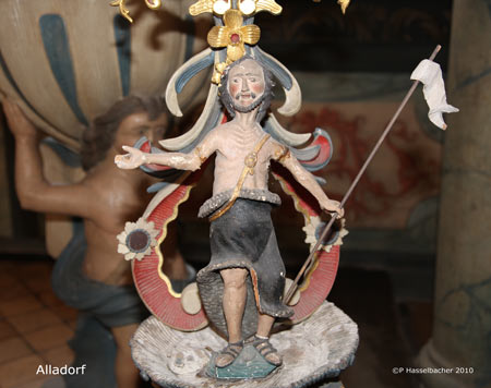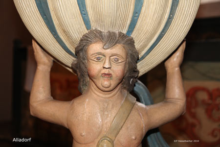 After this viewing, I would have scored my day to have been a resounding success. This was one of the projects I had hoped to accomplish during this trip. However, as is so often the case, an unexpected opportunity arose that put the icing on the cake. Pfarrer Bacigalupo informed me that the motif of an angel holding the bowl on its shoulders (Taufatlant) had a longer tradition. In fact, he told me that the sandstone font by Christoph Rendel in Münchsteinach was itself modeled after a Taufbecken in the nearby village of Herrnneuses. Naturally I had to finish my day in the village of Herrnneuses and did so with a spectacular result. (Next Page)