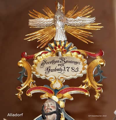 This detail tells of the patron of the piece: Dorothea Reininger of Hanbach, 1785.