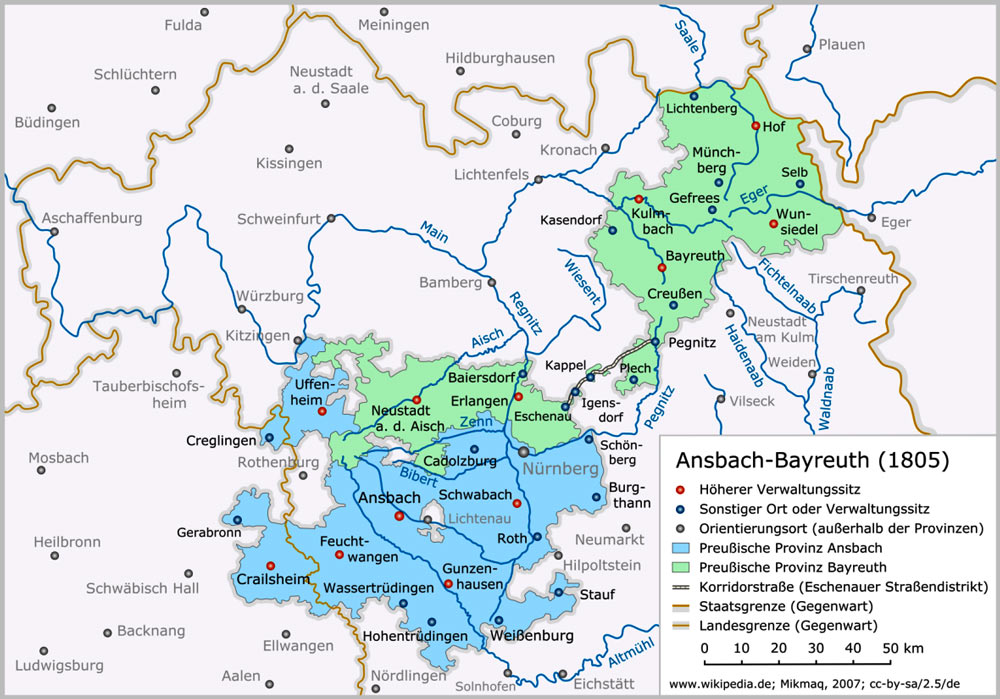 On the other hand, we are told that he was in the Ansbach portion of the Regiment, but looking at old maps of Ansbach/Bayreuth at the time, it seems that Münchsteinach might actually have been in the Bayreuth portion of the combined kingdom, not Ansbach! Additionally, looking at where soldiers came from in the lists of those who did not return, there was a mix of large and small towns, but it seems that large towns predominated.