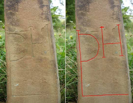 Diane called to me, “Is this a D, or a P?” I looked up to see a roughly obelisk-shaped stone, approximately 24 inches high. Walking around to the front of it, carving could be plainly seen.