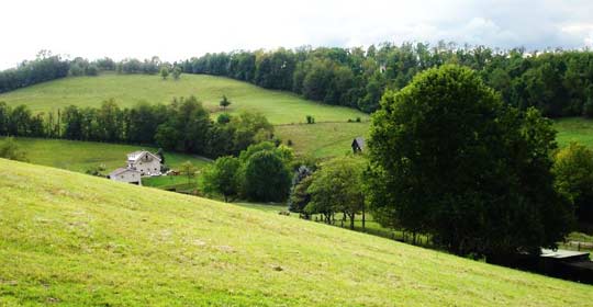 I kept silent about the significant drop-off on my left, and the way my low-slung van’s wheels were slipping on the gravel. At length we came to some outbuildings on the left; they didn’t look promising, but I got out and hiked up the hill to see what I could see. Most significantly what I saw was a farmer staring at me from his farmhouse.