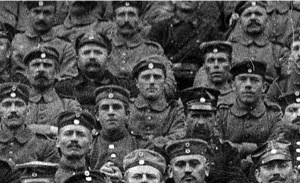 I found this postcard of a group of soldiers taken in 1916, two years after WWI began. It was among a group of photographs of Conrad and Lena’s. I looked hard at enlargements to see if Papa was in it, but was never sure because he was not in every photo he owned. When I had the message on the back translated I learned it was sent to Lena with the message: “I’m in this picture. Can you find me?” Armed with this information and more experience in seeing old photos of that era, I did find Konrad. Another pdf version of this story with other photos of