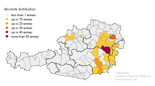 The handful of Haselbachs are more scattered, including a few in Vienna but nowhere else in Neiderösterreich.
