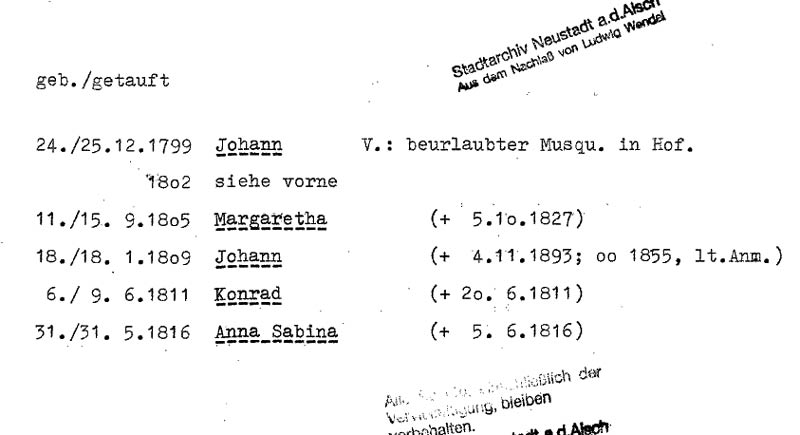 | Jhn. Balthasar Hasselbacher | 1754 | Münchsteinach | 1822 | Münchsteinach | |
