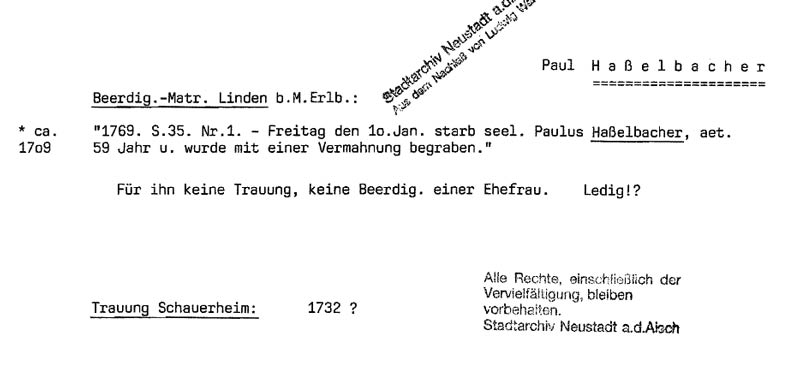 | Paul Hasselbacher | c1709 | Linden, Mrk. Erlbach | |||