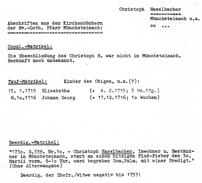| Jhn. Georg Hasselbacher | 1710 | 1774 | Münchsteinach | page 2 | |
