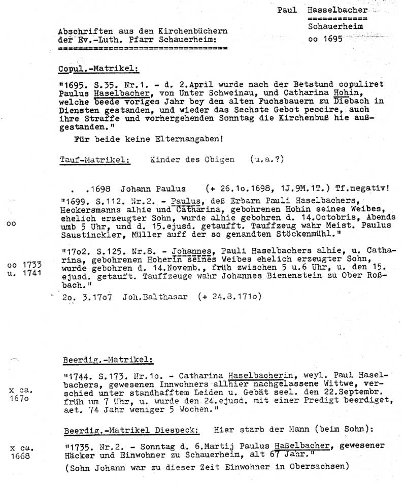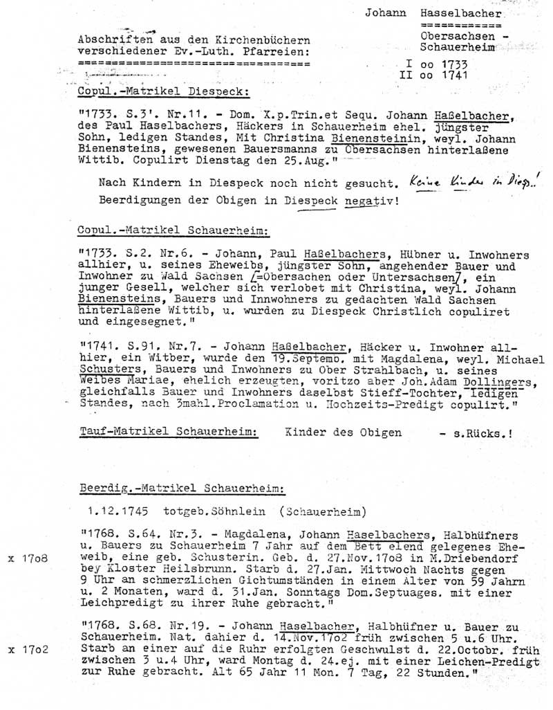 | Johann Hasselbacher | Diespeck, Schauerheim | Son of the elder Paulus; b. 1702 page 2 | |||