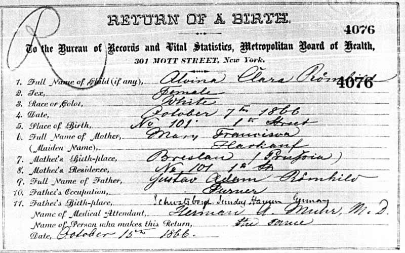 Addendum 16 Sep 2011: By sending letters of inquiry to the three or four largest towns in the former Schwarzburg-Sondershausen, I was able to identify the birthplace of Gustave Adam Römhild. Großbreitenbach can be seen on the map above in the small green area one third of the way from circled Schwarzburg towards circled Romhild. I visited the town last month and have a treasure trove of new information. The original church books are on site.